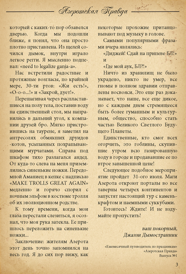«Давай. Постой еще немного и прыгай. Говорят, лифты – это самая кровожадная машина естественного отбора Азерота».