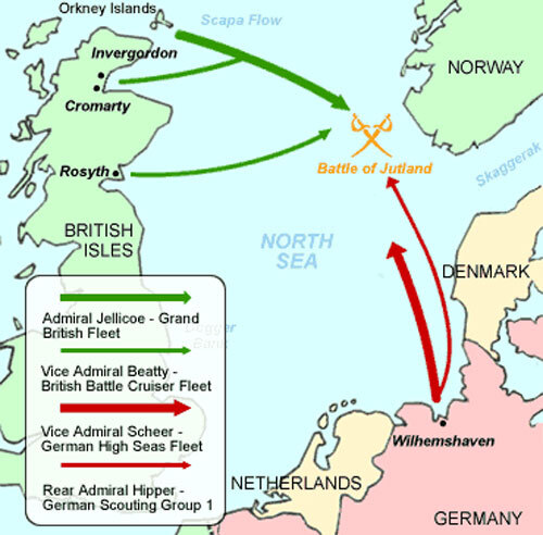 Благодаря перехвату радиосообщений 24 января 1915 года опрометчивая вылазка германских линейных крейсеров завершилась боем у Доггер-банки и гибелью немецкого броненосного крейсера "Блюхер". За пять месяцев до этого, в августе 1914 года, британцы провели вылазку крейсерских сил, которая привела к сражению в Гельголандской бухте и гибели трёх германских лёгких крейсеров, находившихся в море без прикрытия тяжёлых кораблей. После этих неудач кайзер Германской империи Вильгельм II издал указ, запрещавший выход в море крупных кораблей без его личной санкции, в результате чего следующие 18 месяцев немецкий флот в основном держался поблизости от своих внутренних баз и обдумывал свою стратегию, не вступая в крупные сражения с противником.