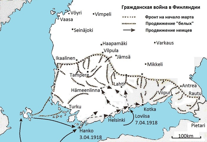 Тем временем уже через 20 дней в новообразовавшейся стране произошло восстание, власть перешла от буржуазного правительства в руки социал-демократической партии Финляндии получившей поддержку в наиболее населенной и промышленно развитой южной части страны. Между "красными" и "белыми" начались вооруженные столкновения. В стране разгоралась гражданская война.