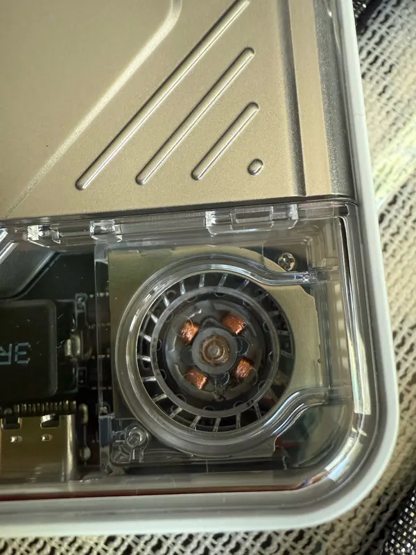 Интересный беспроводной магнитный внешний аккумулятор, работающий по стандарту MagSafe и поддерживающий зарядку Qi2. Модель имеет миниатюрный вентилятор, который пытается охлаждать свои компоненты, а также удобную подставку. Ёмкость составляет около 6 000mAh. Ссылка на зарядку