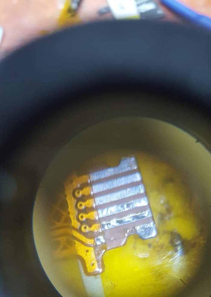 Отмоем коннектор и шлейф изопропиловым спиртом и посмотрим под микроскопом.