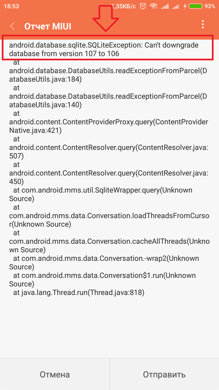 Из первых строк отчета как бы становится понятно в чем тут проблема. Видимо при обновлении до "стабильной" 9.6.1.0 обновилась и база данных, а приложение "сообщения" в текущей версии прошивки с ней работать не желает. К сожалению решения данной проблемы я не нашел, да и техподдержка пока что тихо отмалчивается как на счет проблемы с батареей: