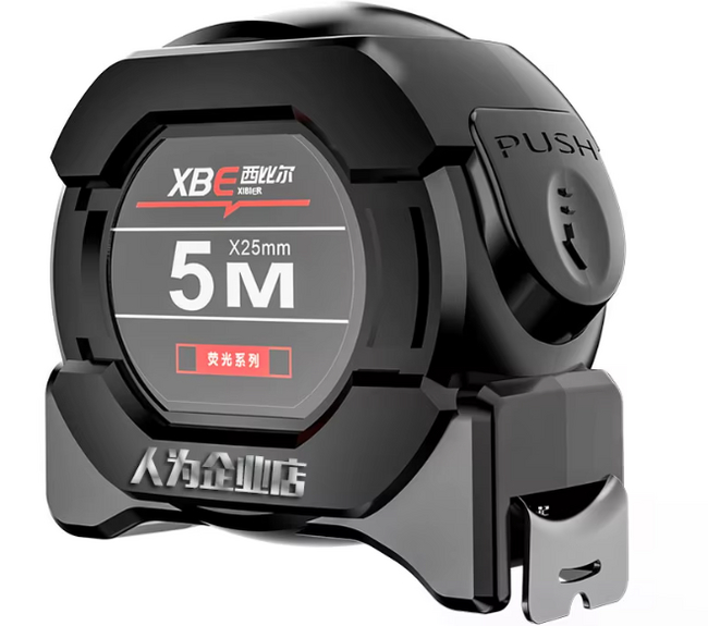Прочная рулетка с флуоресцентной шкалой, позволяющая работать даже в условиях плохого освещения. Оснащена самоблокирующимся механизмом, который фиксирует ленту на нужной длине.