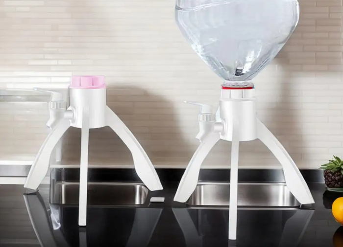 Корпус выполнен из ABS-пластика, который устойчив к нагрузкам и длительному контакту с водой. Опоры обеспечивают хорошую устойчивость и не скользят по поверхности стола. Форма рассчитана на равномерное распределение веса бутыли, что снижает риск перекоса и пролива.