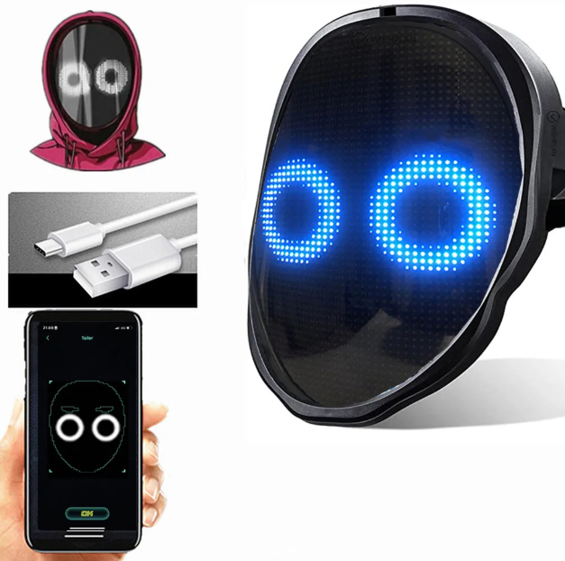 Светодиодная маска с Bluetooth-управлением предназначена для создания анимированных визуальных эффектов на мероприятиях и в креативных проектах. RGB-панель поддерживает отображение текстов, графики и анимаций с настройкой через мобильное приложение. Маска используется на фестивалях, выступлениях, вечеринках и в видеоконтенте.