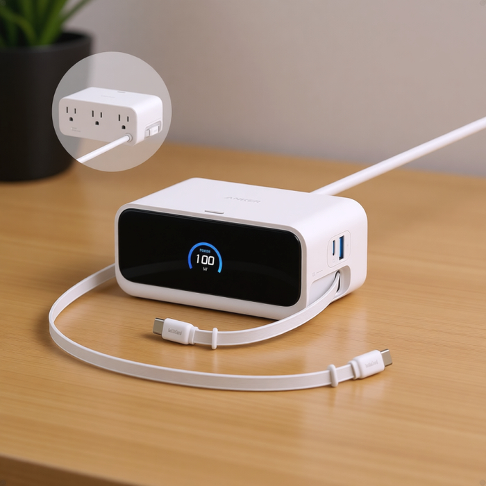 Этот мощный внешний аккумулятор создан для зарядки ноутбуков, смартфонов и других требовательных устройств. Максимальная мощность 240 Вт позволяет быстро заряжать даже технику с высоким энергопотреблением. Встроенный дисплей показывает текущую мощность и состояние батареи.