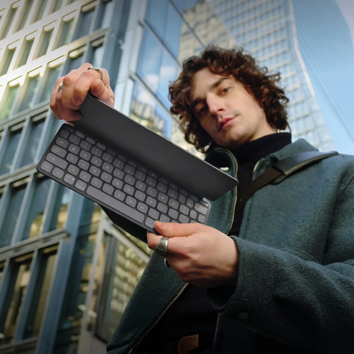 Клавиатура легко складывается в компактный формат, что удобно для путешествий и работы вне дома. Она подключается по Bluetooth к любому смартфону, планшету или ноутбуку. Несмотря на небольшой размер, клавиши расположены удобно и обеспечивают комфортный набор текста.