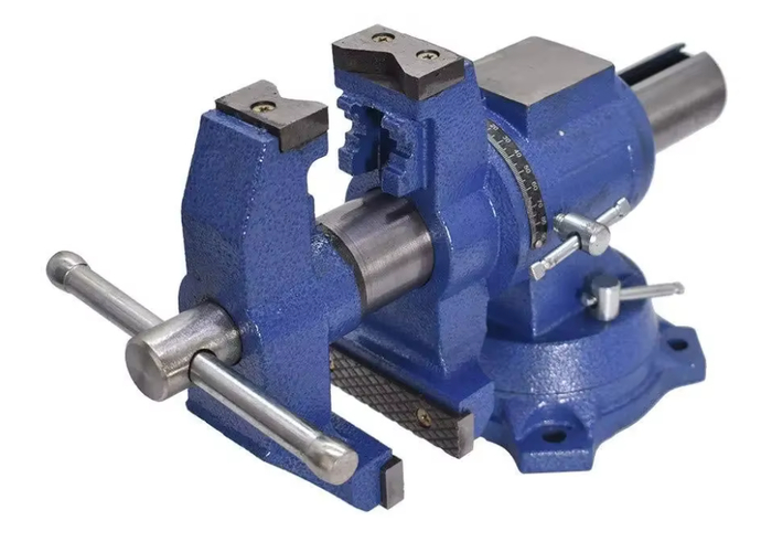 Эти тиски созданы для тех, кто регулярно работает с металлом, деревом или пластиковыми заготовками и нуждается в надёжной фиксации деталей. Корпус выполнен из ковкого чугуна — материала, который выдерживает высокие нагрузки, не растрескивается и обеспечивает стабильность при интенсивной работе. Основание вращается на 360 градусов, что позволяет быстро менять угол зажима без необходимости переставлять инструмент или деталь.