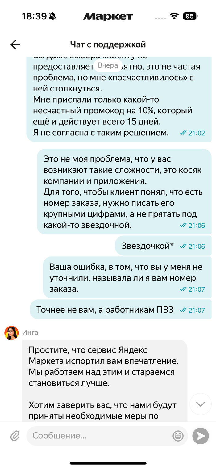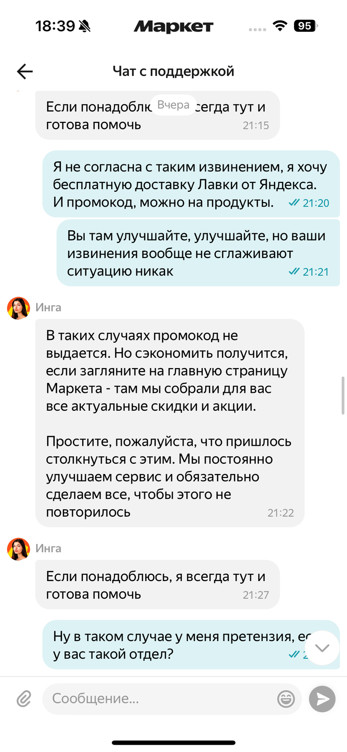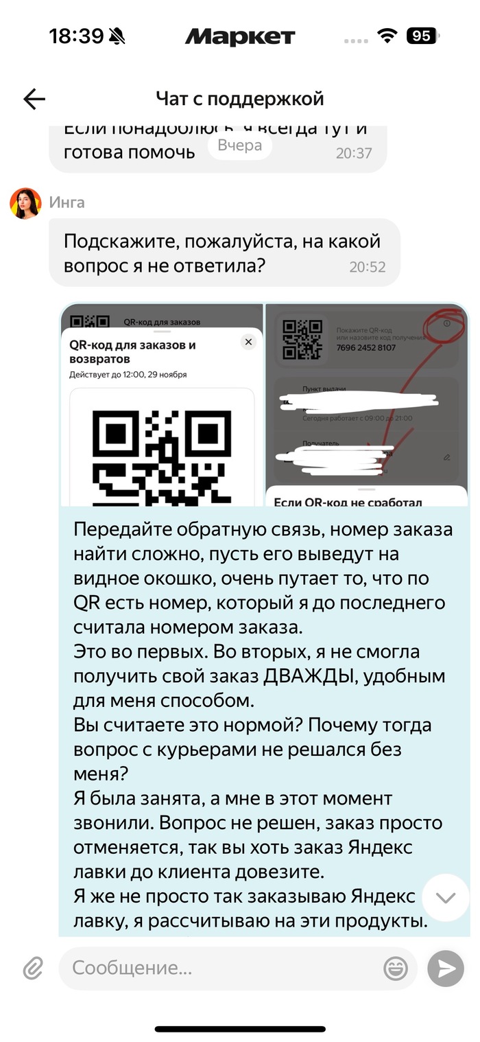 Тут я была возмущена, а правда, какого лешего они отменяют хотя бы доставку Лавки, то что курьер не смог получить заказ из маркета, не означает, что заказ из лавки то я не жду.