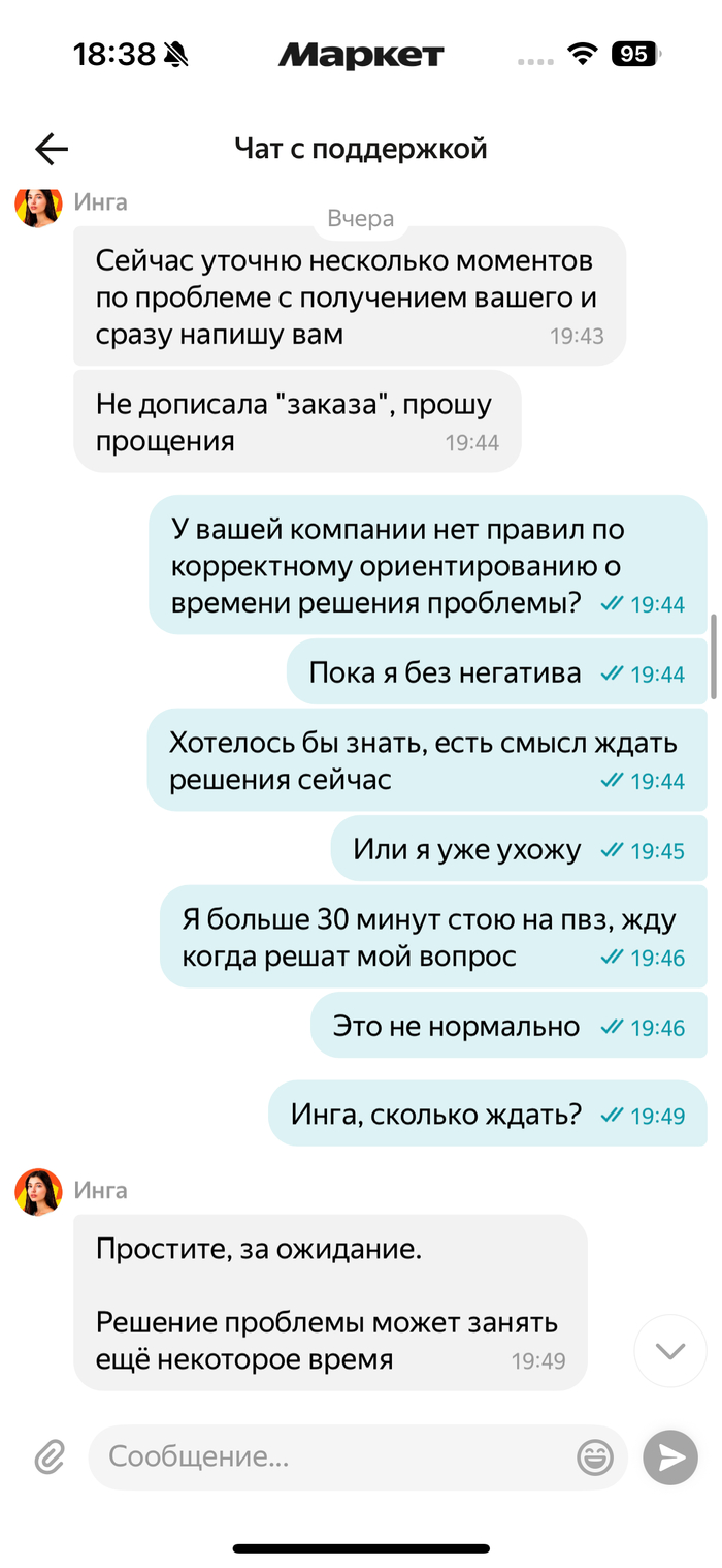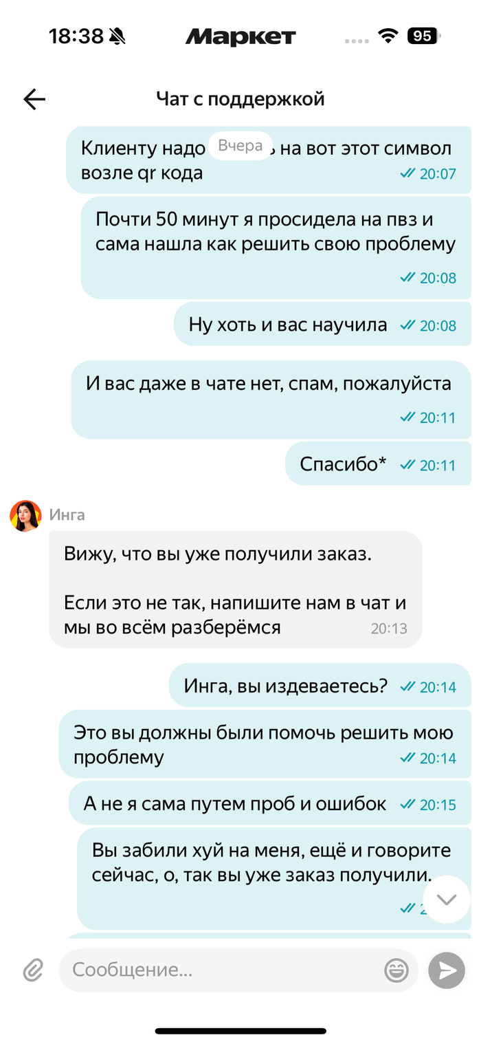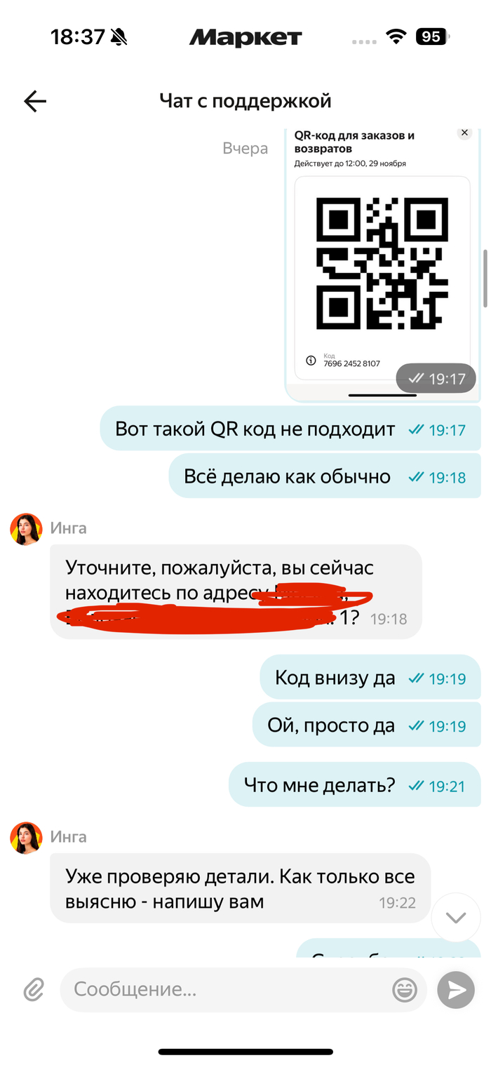 Всё это время я сидела в пвз, девушкам правда позвонили один раз, спросили, могут ли они по номеру пробить заказ, они сказали, что такой возможности нет, Яндекс отменил её неделю назад. На что им сказали, поняли, ладно, будем дальше думать как решить вопрос. Больше с ними за это время никто не связывался.