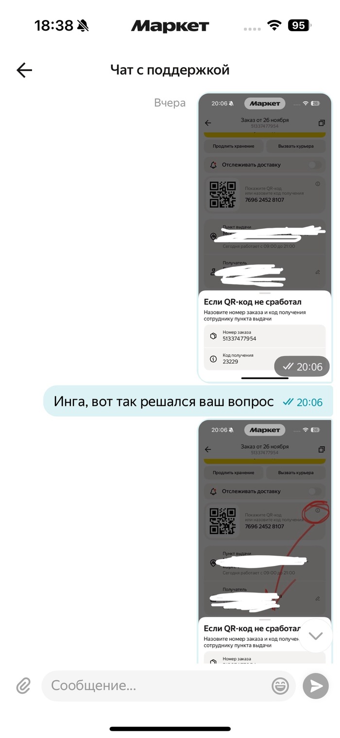 Я такая, лаааадно, давайте мой попробуем, пробуем мой, а с ним такая же ерунда. девушки с ПВЗ не знают что делать, я тем более, попробовали код под QR назвать, тоже не получается.