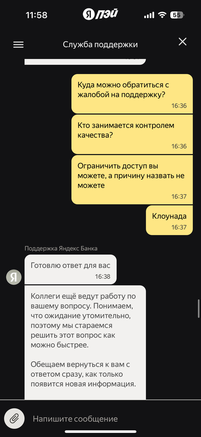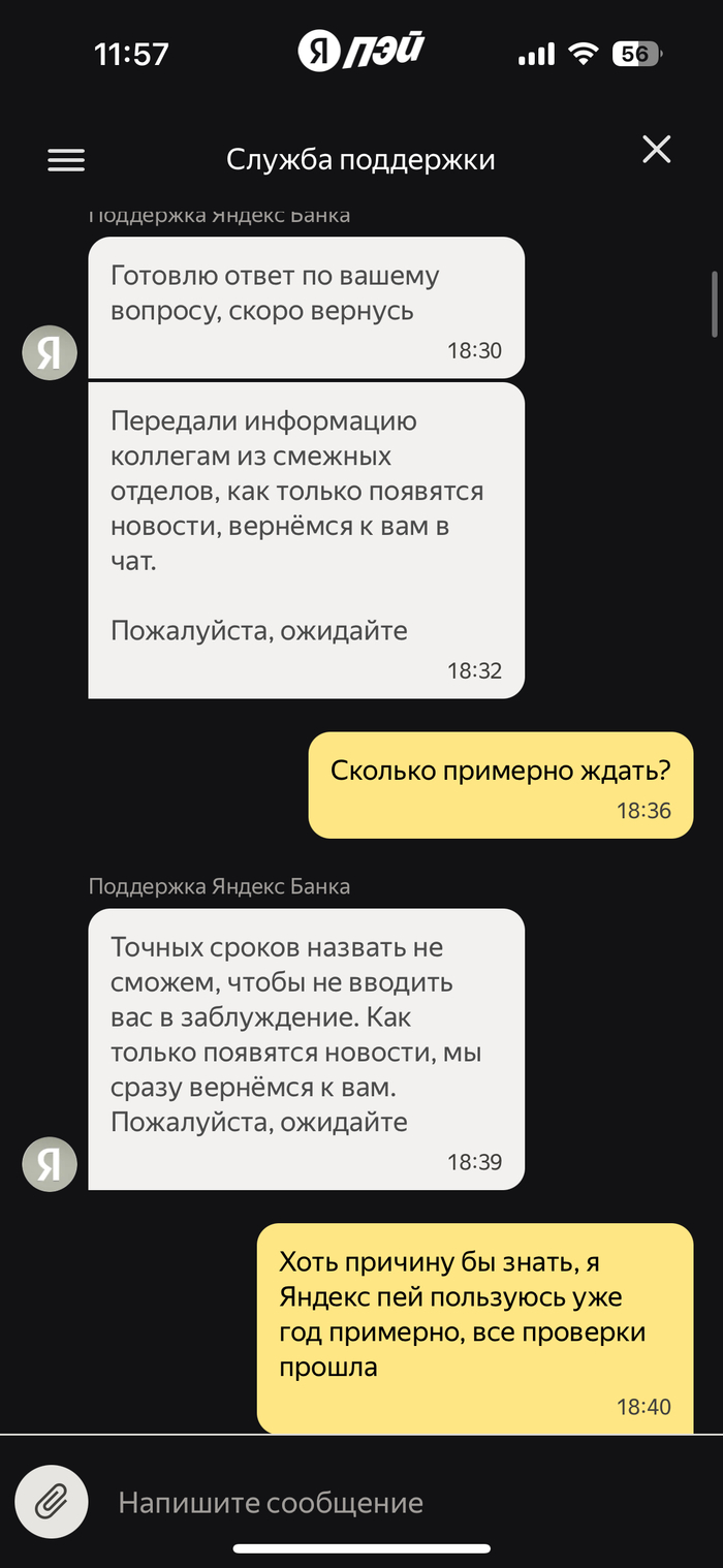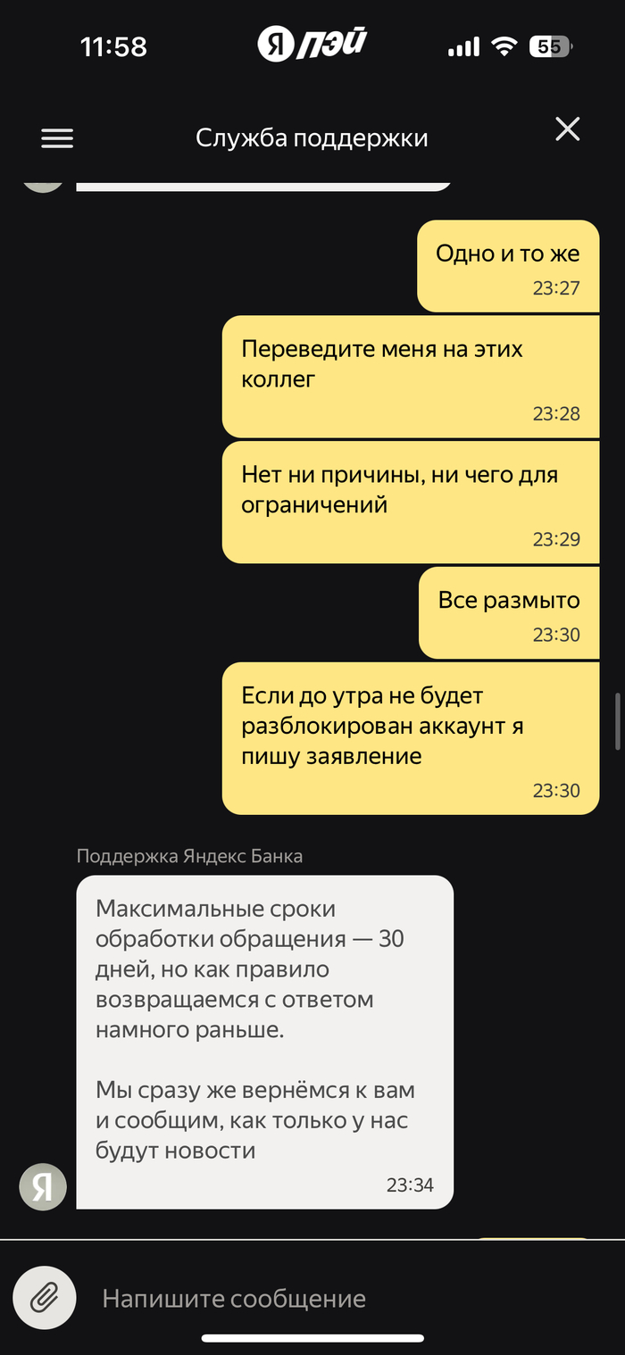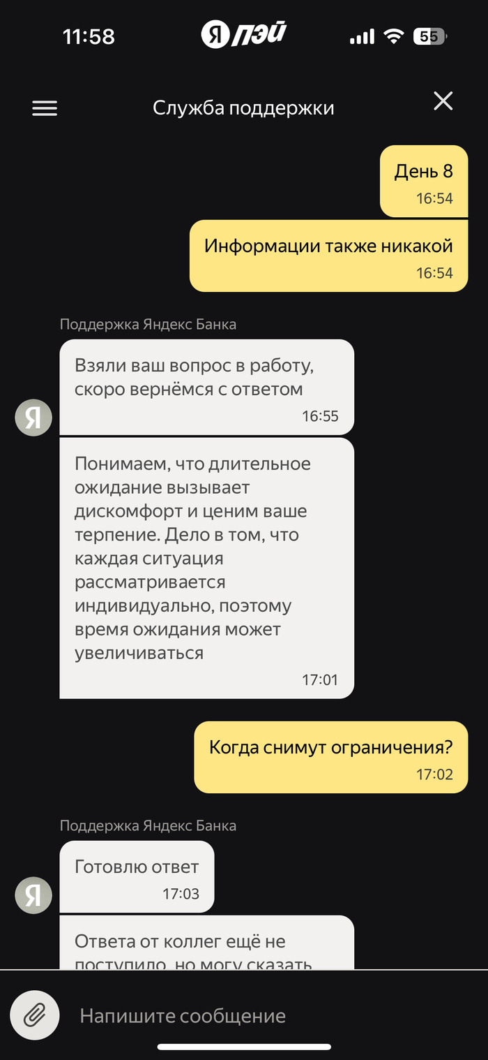 Уже 2 недели, как ограничили доступ в аккаунт ЯПей(без причины) и молчат(одинаковые ответы, разные формулировки), что делать не понятно.