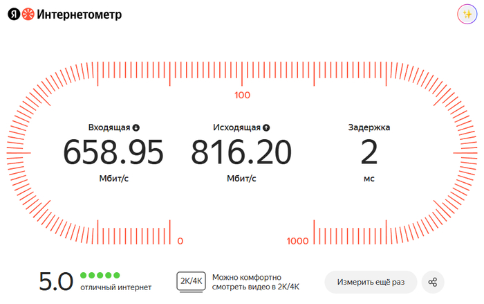 И это при том, что у меня тариф 200 мегабит, а провайдер не сознается, что может больше!