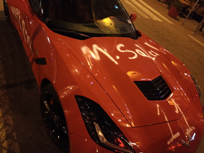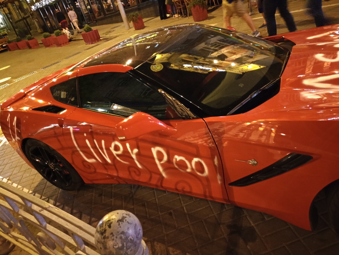 через полчаса после финала Лиги Чемпионов в Киеве. Очевидцы говорят, что фанатов рядом с машиной замечено не было, и она уже приехала в подобном состоянии)