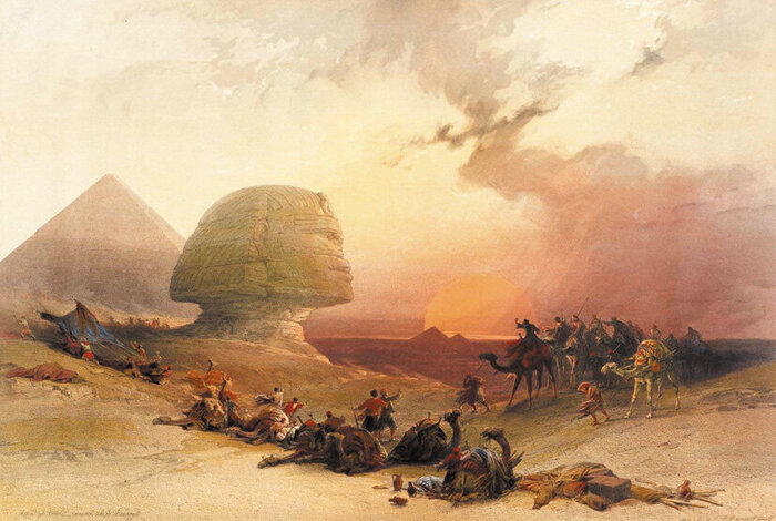 Кстати, обратите внимание! Носа на этом рисунке уже нет. А значит, легенда о том, что нос сфинксу отстрелили из пушки артиллеристы Наполеона, – неправда. Ведь египетский поход Наполеона состоялся через полвека после того, как был создан этот рисунок.