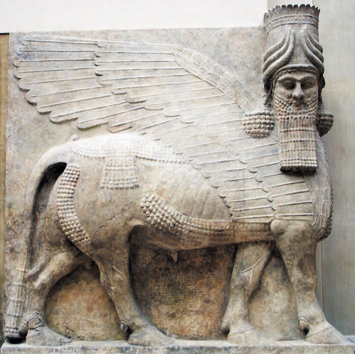 Ну, а крылья – от древнего шумерского духа Шеду, которого изображали в виде крылатого быка или льва. Тоже, кстати, с человеческой головой, но только с бородатой, мужской.