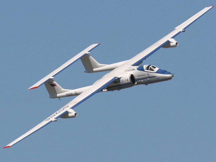 М-55 "Геофизика" - высотный дозвуковой самолет-разведчик, созданный в ОКБ Мясищева в 1988 году. Построено пять единиц, эксплуатируется одна.