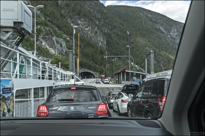 Отдельного упоминания стоят паромные переправы. Норвегия – это не только горы с туннелями, а еще и страна фьордов. Если надо быстро попасть с одного берега на другой, а на объезд нет времени, то на помощь приходят паромы.