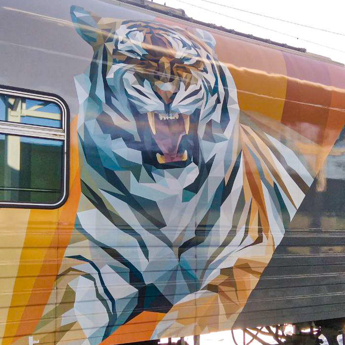 Видите, даже тигр, нарисованный на поезде "Россия", угарает над тем, что "Россия" может опоздать аж на полтора часа..