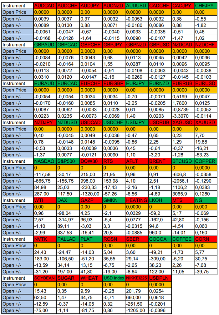 Весь перечень анализируемых активов указан ниже в общем количестве 62 инструмента. Здесь Вы найдете активы рынка Форекс, популярные активы Московской биржи, не менее популярные активы Чикагской биржи СМЕ и мажор криптовалютного сегмента - Биткоин, за которым следуют все альткоины.
