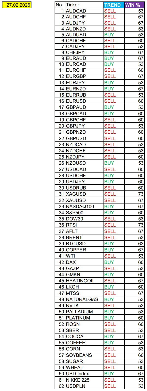 Очередные сезонные тенденции на пятницу 27 февраля 2026 по основным мажорам финансовых рынков.