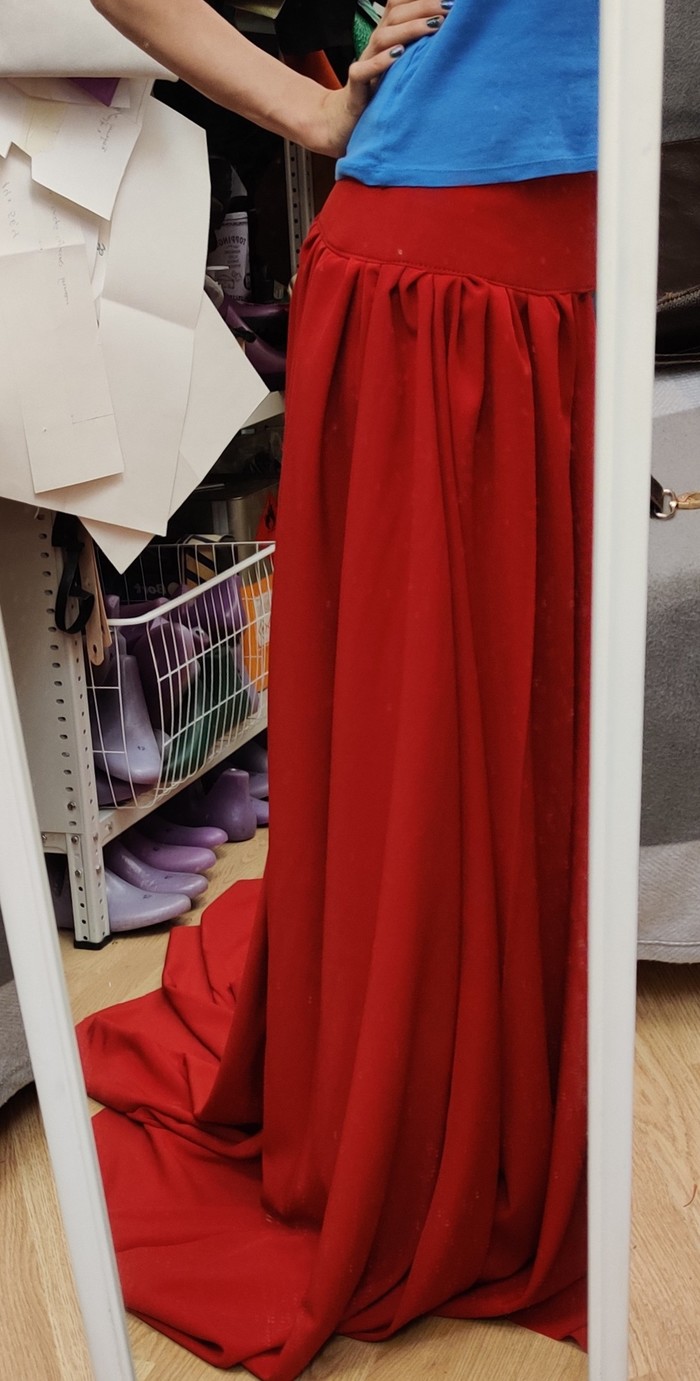 На данном этапе я сражаюсь с юбкой. Десять метров ткани лежат некрасивой тряпочкой. Похоже, чтобы юбка выглядела как на арте, надо делать кринолин
