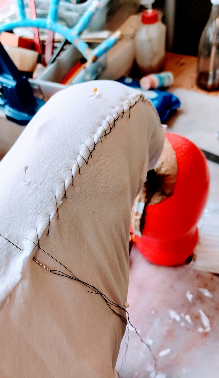 Одной только ткани у меня на 10тр хD я в ужасе думаю, как буду делать парик. У которого основа - голый скальп. И огромный хвостяра с навешанными на него камнями.