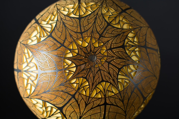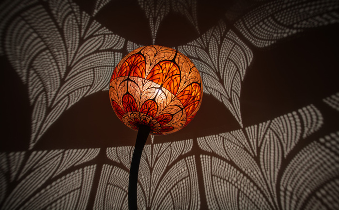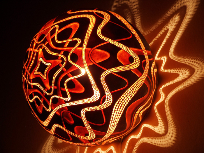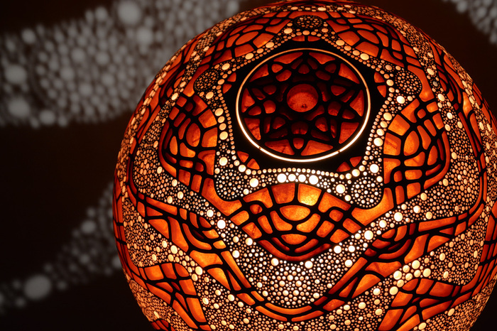 Лампы, созданные польским архитектором и дизайнером под именем Прземек (Przemek). Материалом для его творений служит высушенная тыква, на которой он вырезает узоры.