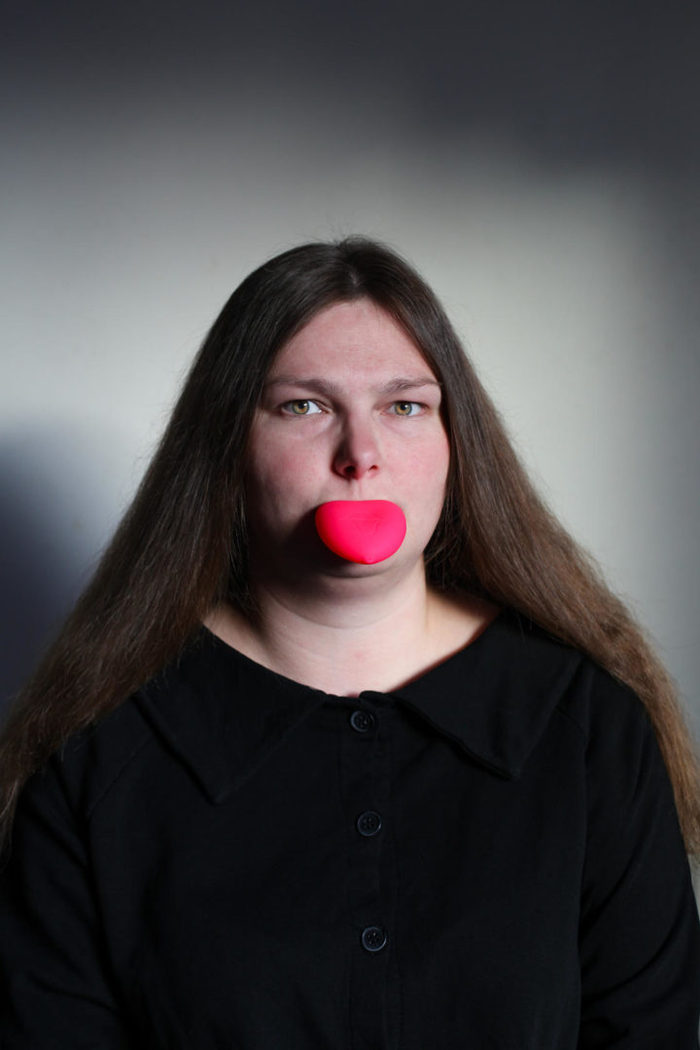 Применяя стиль традиционной портретной живописи, она ставит под вопрос использование продуктов, которые обещают усовершенствовать внешний вид.