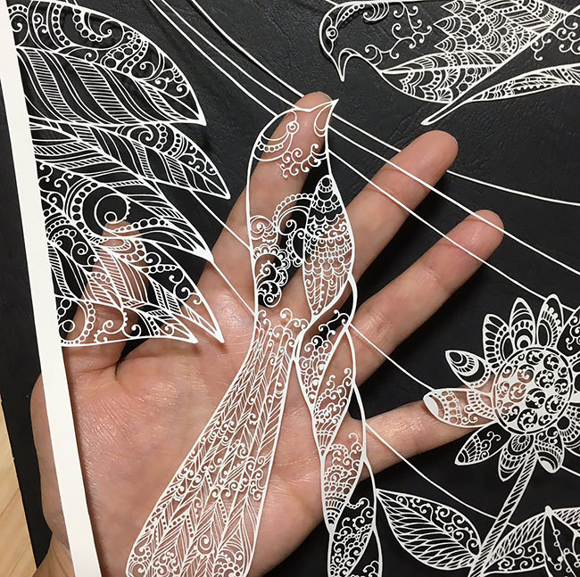 Утончённые, вырезанные из бумаги произведения искусства в технике кириэ* от японского художника Кири Кена (Kiri Ken).