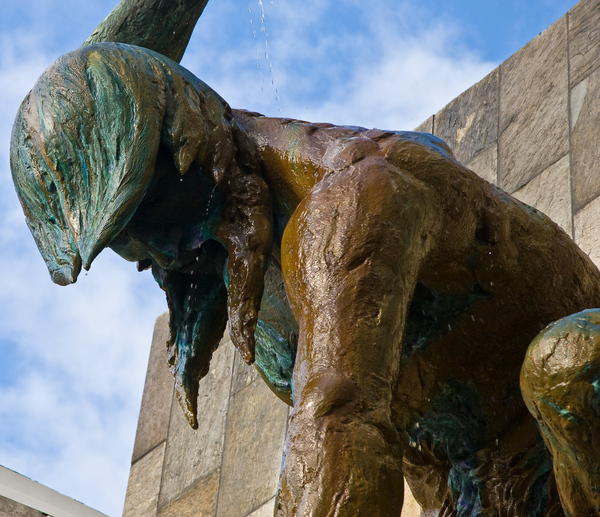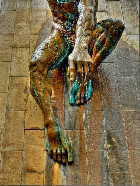 Вода из руки Бога стекает по скульптуре в чашу.