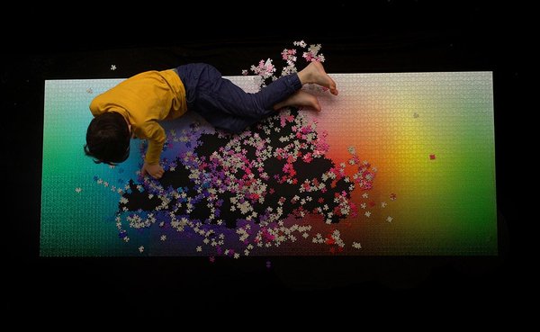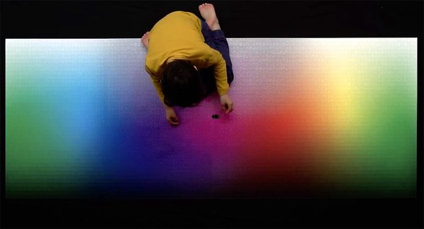 Детали головоломки образуют цветовую гамму CMYK размером 6,5 х 2,5 фута (1,98 х 0,76 м)