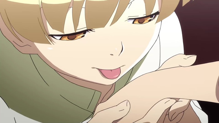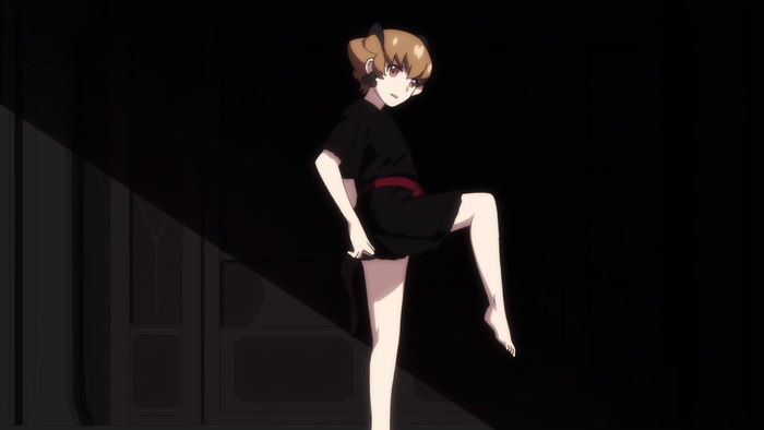 И спойлерную часть я хочу начать с того, что экранизация этой работы ISIN NISIO вряд ли бы увидела свет без успеха Цикла историй. Не потому, что как-то связана с ней сюжетно, а потому, что показала возможность популярности работ со сложными, неоднозначными персонажами, коих мы можем судить и оценивать не только по их поступкам, а главное - по их мыслям. Тем самым сокровенным мыслишкам, которые ежесекундно роятся в наших головах, и которые мы очень не хотим показывать другим. И возможно, именно поэтому это аниме сделали максимально похожим на него. Kubikiri Cycle – буквально работа в стиле Цикла историй. Это очевидно и по уже упомянутой характерной гатаревской рисовке, позам и характеру повествованию. И да, это все идеально ложится в канву повествования данного произведения, прекрасно визуализируя его.