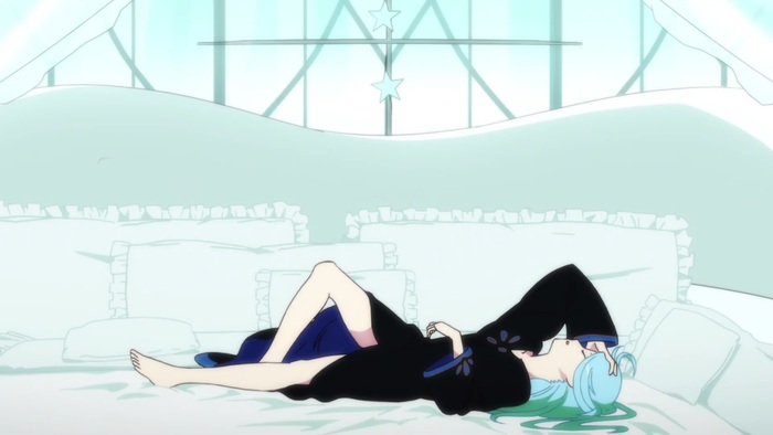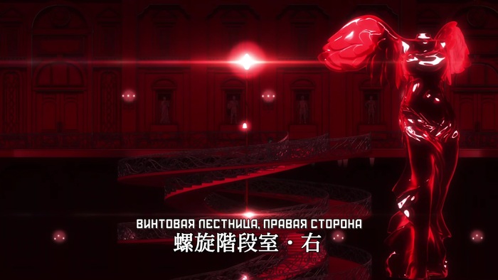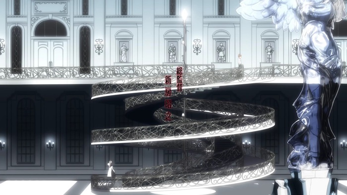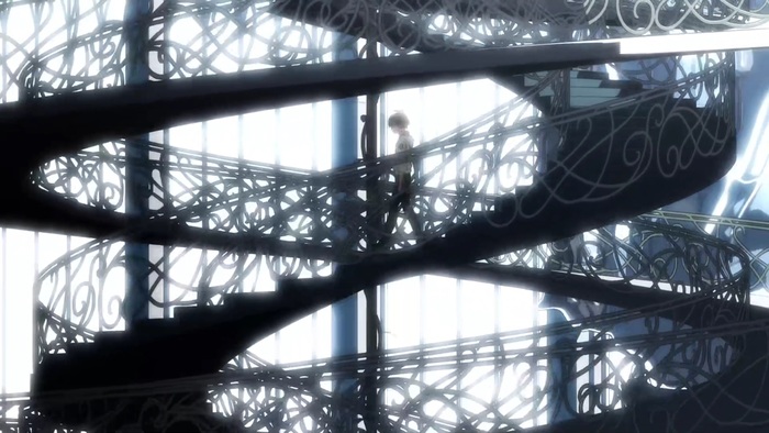 Собственно, характерный гатаревский стиль Shaft, с его гротескной символичной гигантоманией (чего только стоит колоссальная вращающаяся армиллярная сфера в поместье!), нереальной архитектурой с завораживающими лестницами и витражами, фантасмагоричным безлюдным окружением, великолепной игрой цветов, необычными сложными ракурсами и позами персонажей, местами наполненными изысканным эротизмом - все это великолепно подходит для Kubikiri Cycle - ибо почти все происходящее скорее воспоминание главного героя, приукрашенное, искаженное, где все окружающее скорее отражение его эмоционального состояния, чем реальности. И как же это умопомрачительно красиво!!! Любители интересного визуала - думаю, как минимум этот аспект вам зайдет!