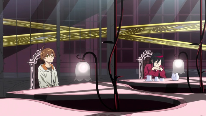 Да, первая опубликованная книга ISIN NISIO была детективом, и как во многих из его последующих работ, полна игр слов, игр с читателем (и зрителем), долгих диалогов, внутренних монологов, размышлений, и непривычного к его стилю скорее обескуражит, а необычный, чутка сюрреалистичный визуальный стиль от Shaft, явно отсылающий к Гатари, не добавляет дружелюбности к не знакомому с ним зрителю. Впрочем, камон, за это мы экранизации ISIN NISIO и любим!