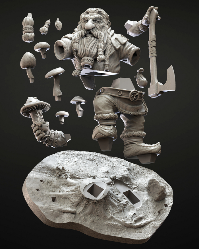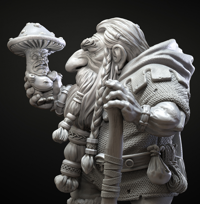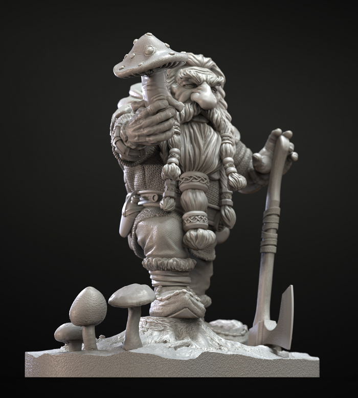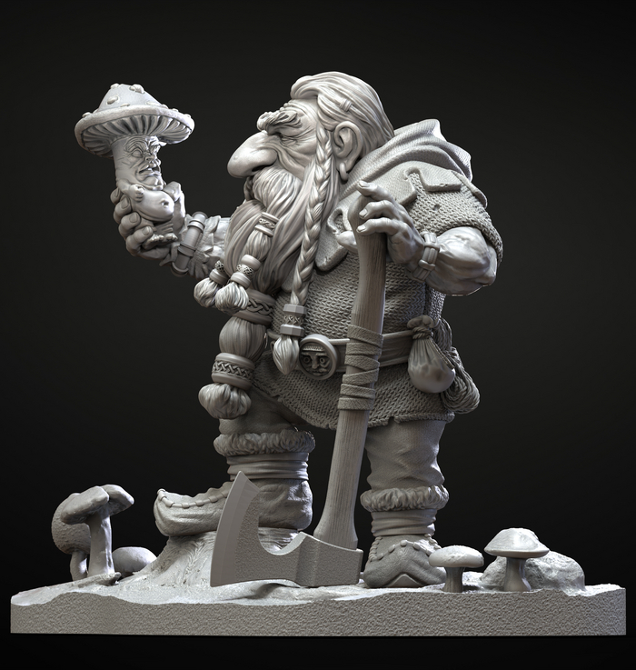 Решил создать дварфа вдохновившись работами Пола Боннера. Работа делалась под печать, поэтому кроме моделинга надо было ещё разделить её, очень хотелось создать персонажа с характером и с большим количеством деталей, дабы интересно было рассматривать)