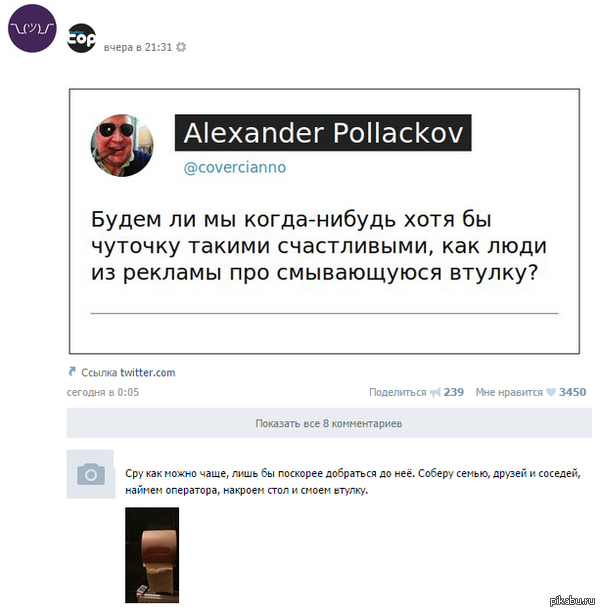 TwoSpoons 10 лет назад Сегодня я пошел против системы и выкинул смываемую втулку ZEWA в мусорное ведро. [моё] Zeva Смываемая втулка Ведро Текст
