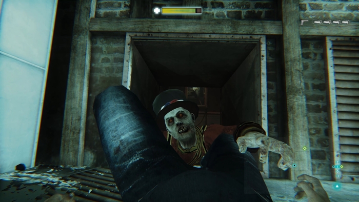 В рукопашных сражениях тоже есть свои послабления. У героя нет показателя стамины, так что размахивать дубиной можно сколько душе угодно. В эпоху засилья соулс лайков, где в каждой второй игре у протагониста есть шкала выносливости, это ощущается глотком свежего воздуха. Оружие не имеет показателя износа и не ломается, что дает нехилое преимущество в бою, позволяя при желании пройти игру без единого выстрела. Существенной разницы между лопатой и какой-нибудь битой для крикета нет. Чтобы вы не выбрали вам все равно попадутся мертвяки, которые убиваются только с 5-6 ударов, и при этом точно такой же зараженный, встречный через пару шагов, ляжет с 2-х тычков. Вероятно, прочность зомби распределяется случайным образом. Нанеся достаточное количество урона, врага можно добить мощной атакой, что моментально умертвит негодяя, но в такие моменты герой не получает неуязвимости пока проигрывается анимация добивания, так что находящийся рядом ещё один монстр может спокойно вам дать леща.