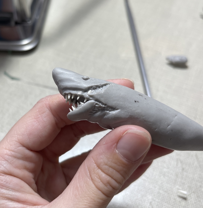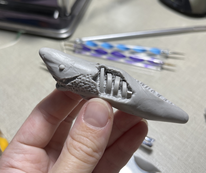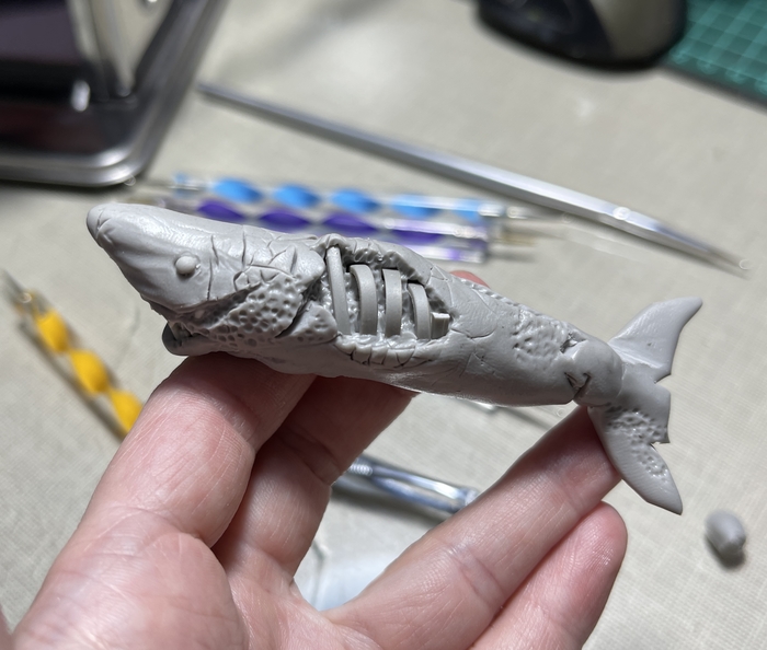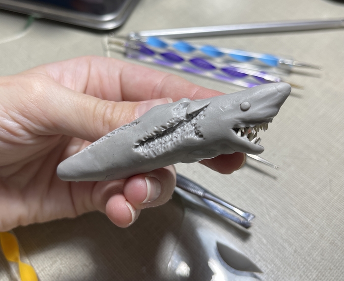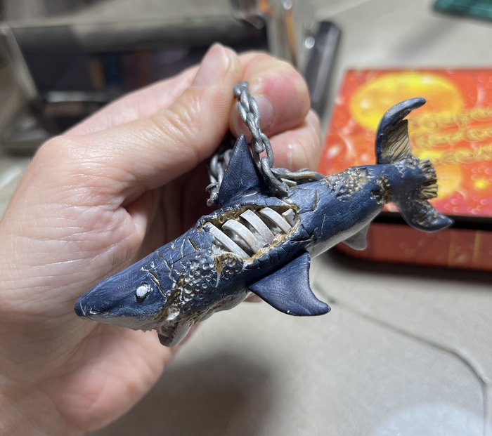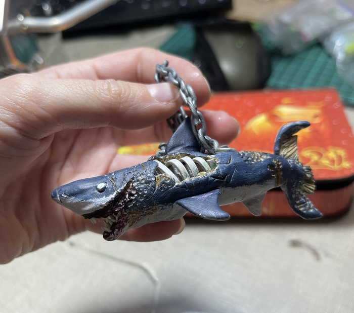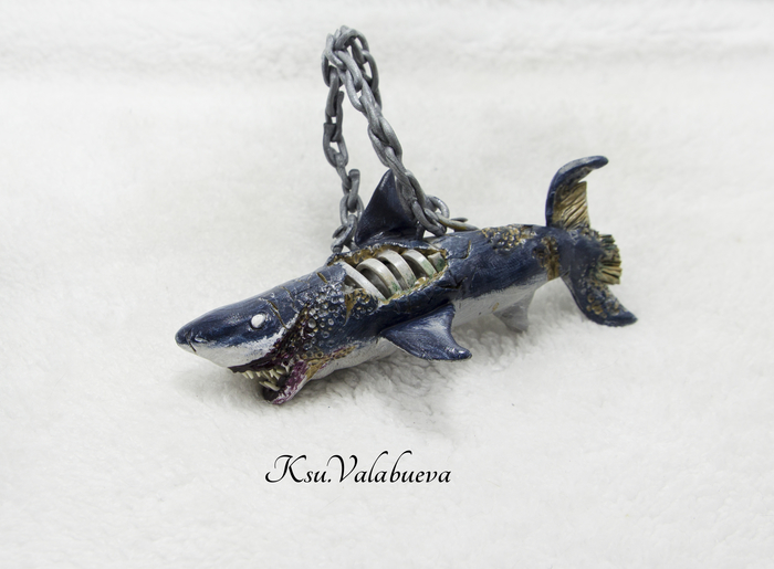 Всем доброго времени суток! Увидела видео на ютуб канале мастера JackJack Creator с ускоренным процессом создания акулы зомби из полимерной глины, решила попробовать примерно повторить. Это моя первая полноценная фигура. И теперь она может стать кулоном в автомобиль.