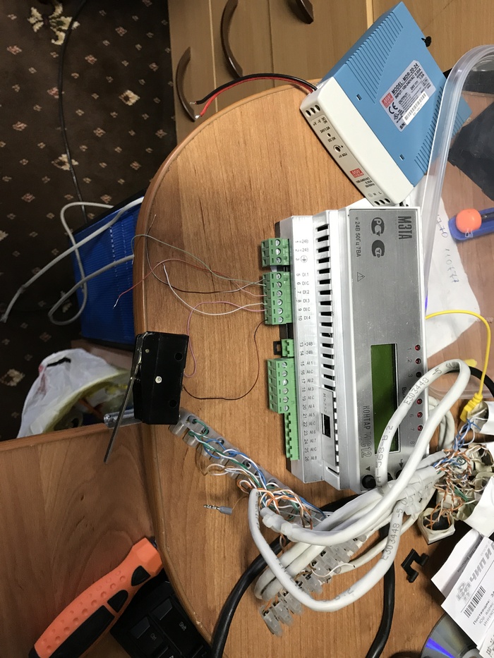 И вуаля: простой, надёжный(этот контроллер расчитан на управление сложными технологическими процессами) и почти бесплатный замок готов! Теперь нужно нажать на кнопки в определённой последовательности, и дверь открывается..