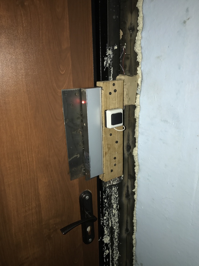 Поставлен электромагнит и кодирующие кнопки на дверь:
