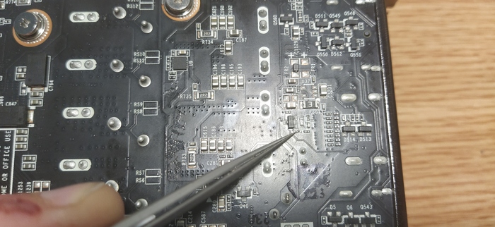 Сначала вычищаю слои до полного устранения короткого замыкания.