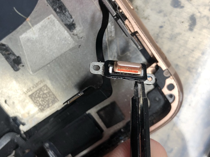 Вторая на толкателе SIM лотка. Это штука на которую вы скрепкой давите, чтобы вынуть сим лоток.