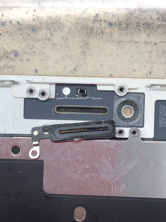 Ставим новую сетку динамика и возвращаем на место пылевик фронтальной камеры.