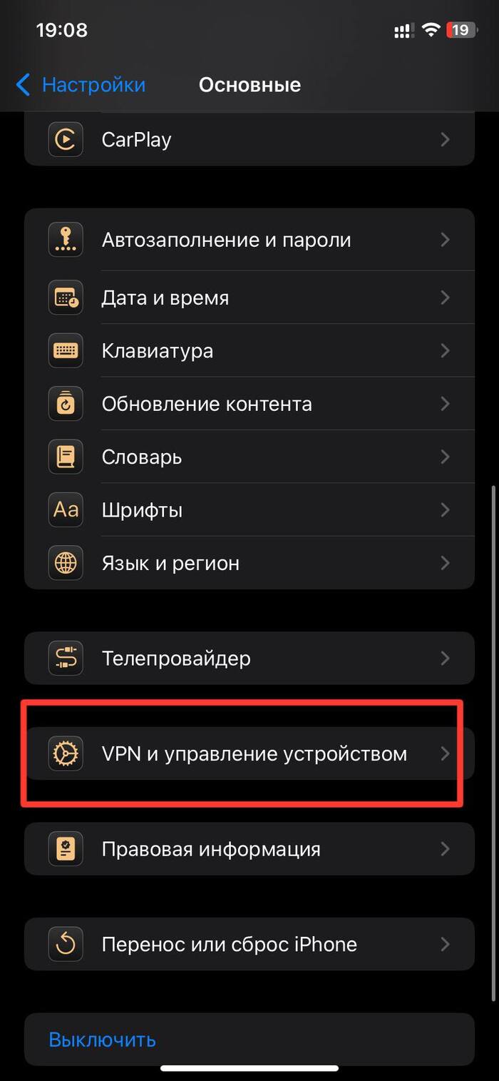 Основные ----- VPN и управление устройством --- Ваш email iCloud с которого вы входили в AltServer.