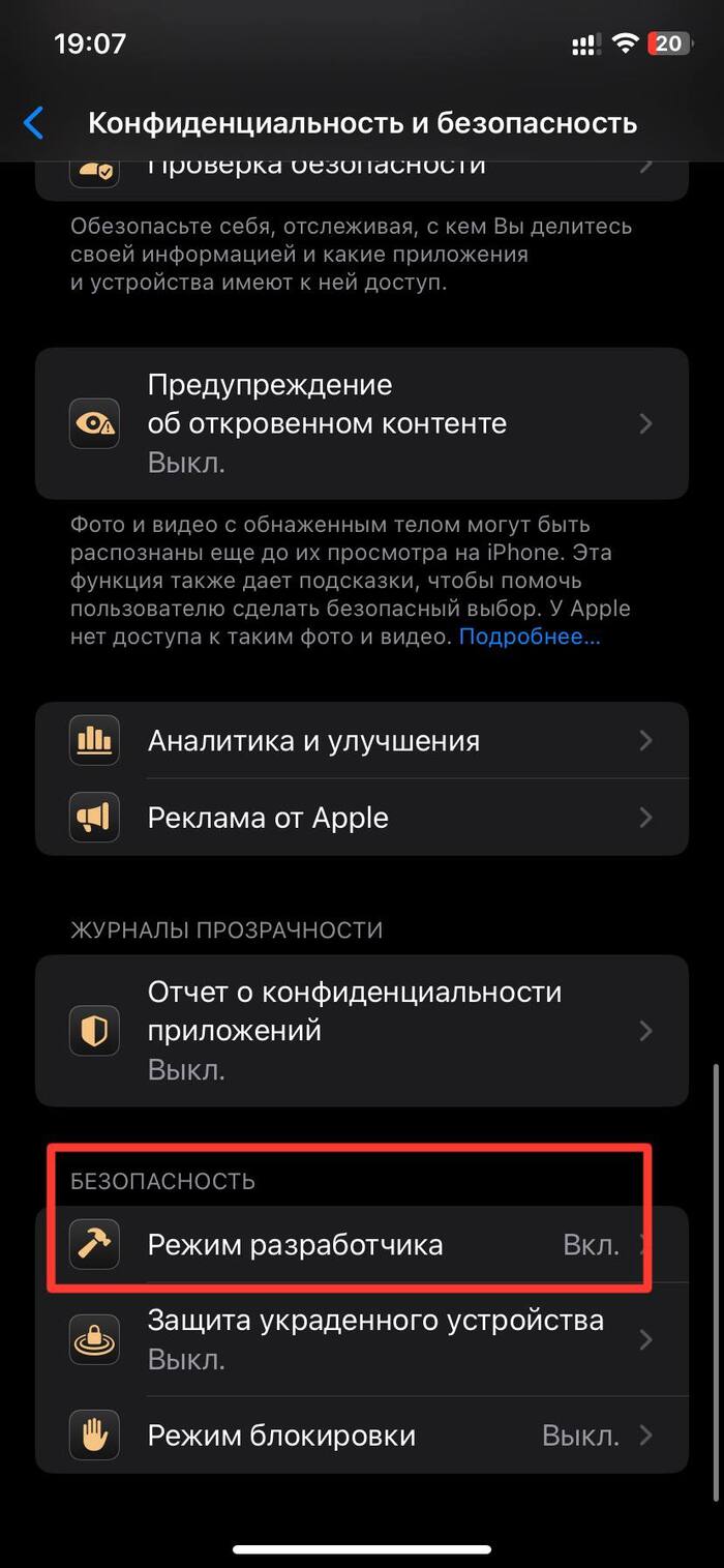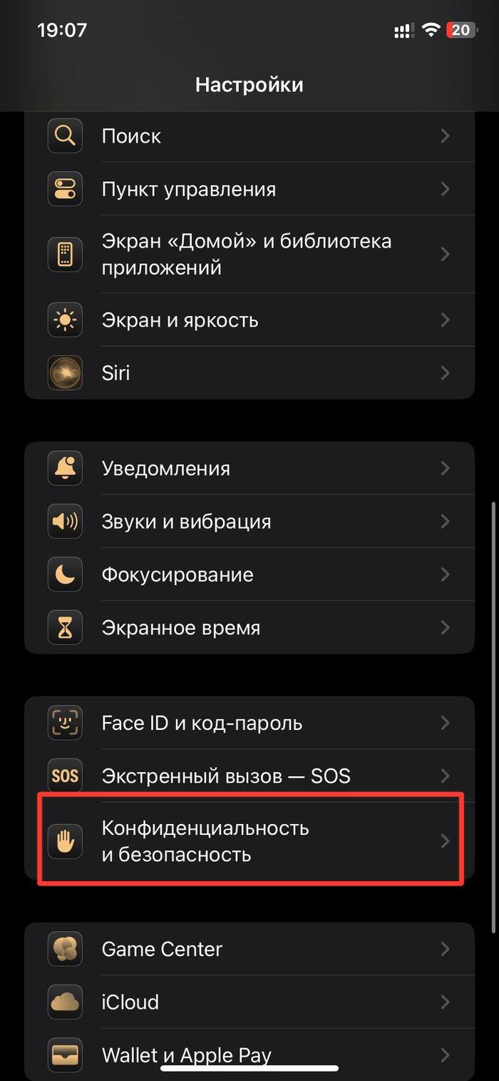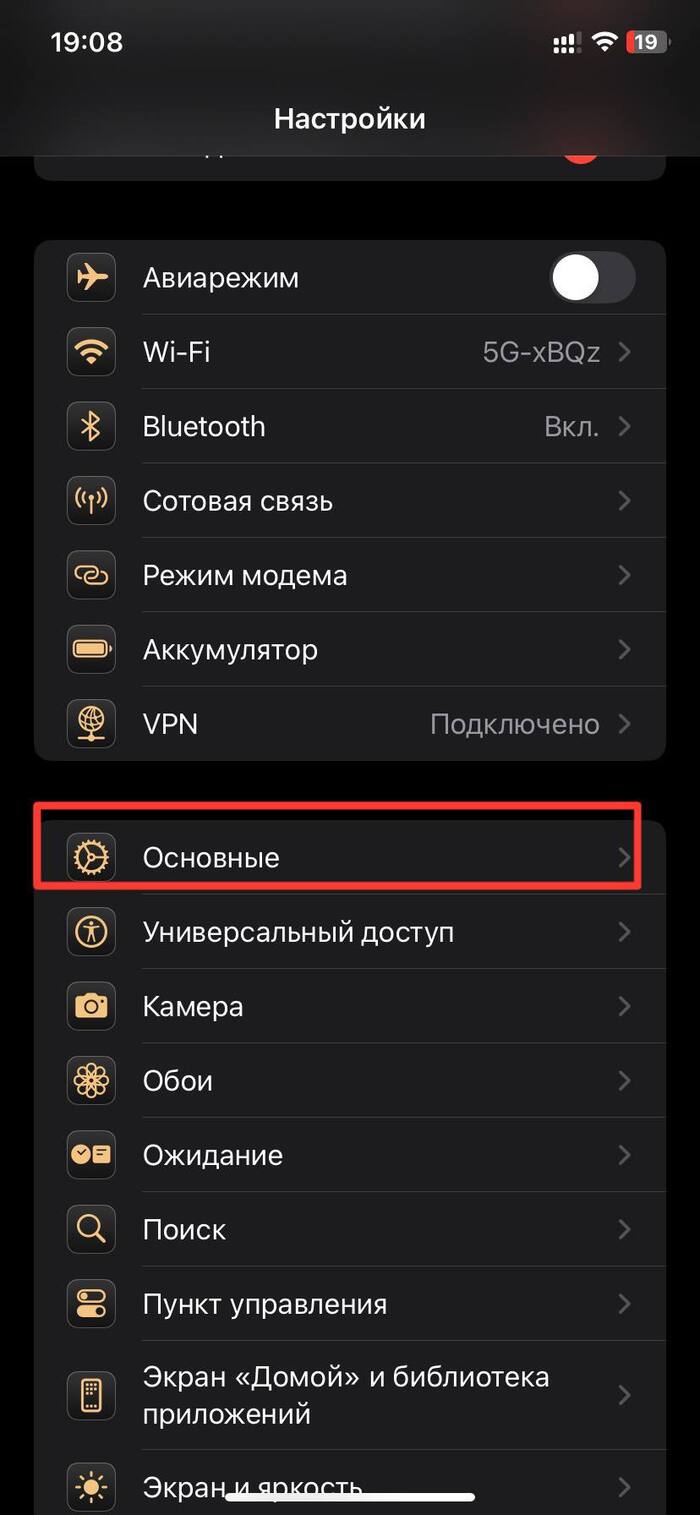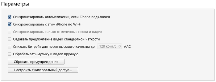 Подключаем айфон кабелем к ПК. Спускаемся в самый низ, к Параметрам: