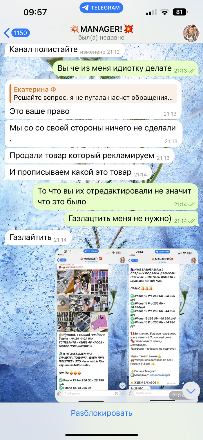 Совершенно искреннее недоумение вызвала дальнейшая переписка, где персонаж 💥Manager💥 решил что можно не только нае..ть, но еще и загазлайтить😂