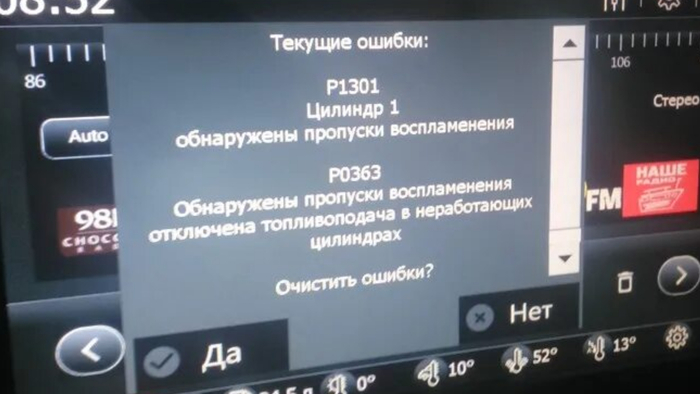 Ошибка p1301 — пропуски воспламенения в первом цилиндре, говорит нам о том, что ЭБУ видит, что топливовоздушная смесь в первом цилиндре сгорает неполностью или не сгорает совсем.