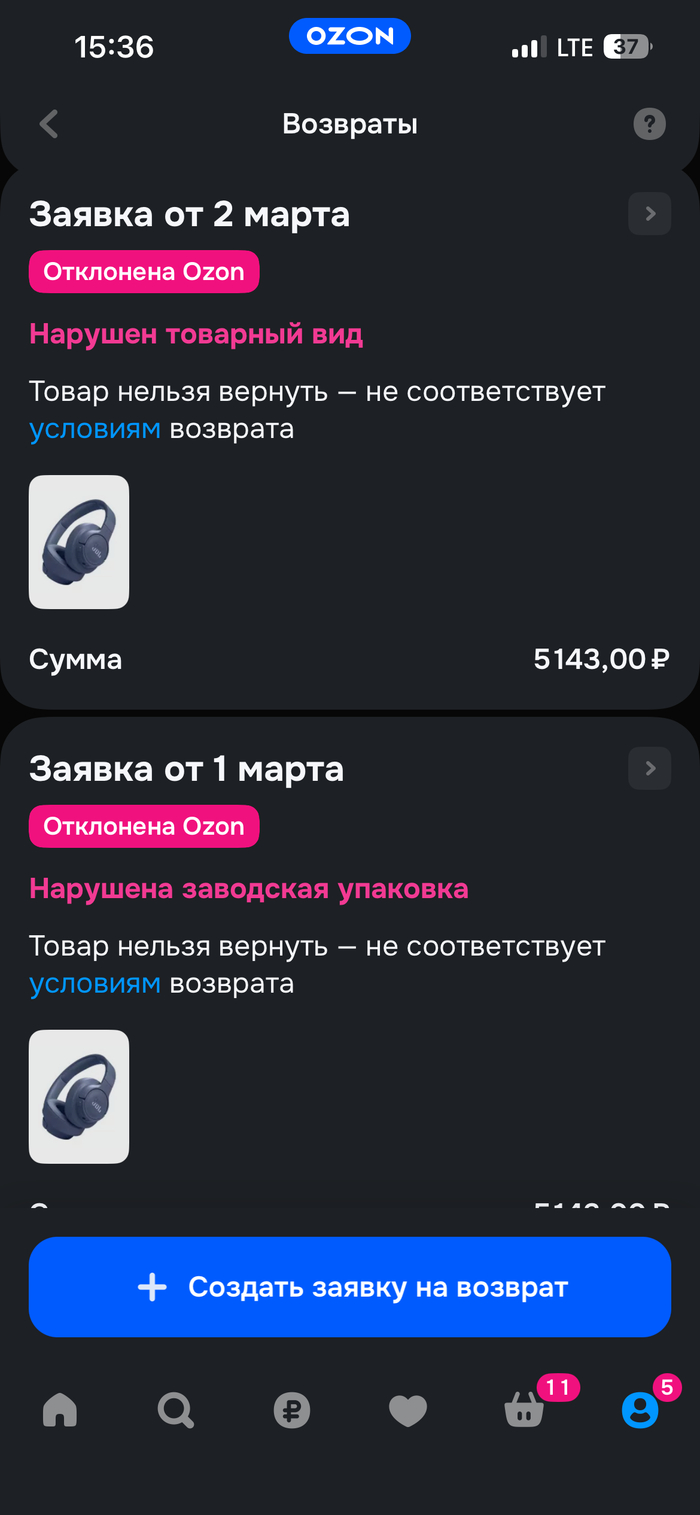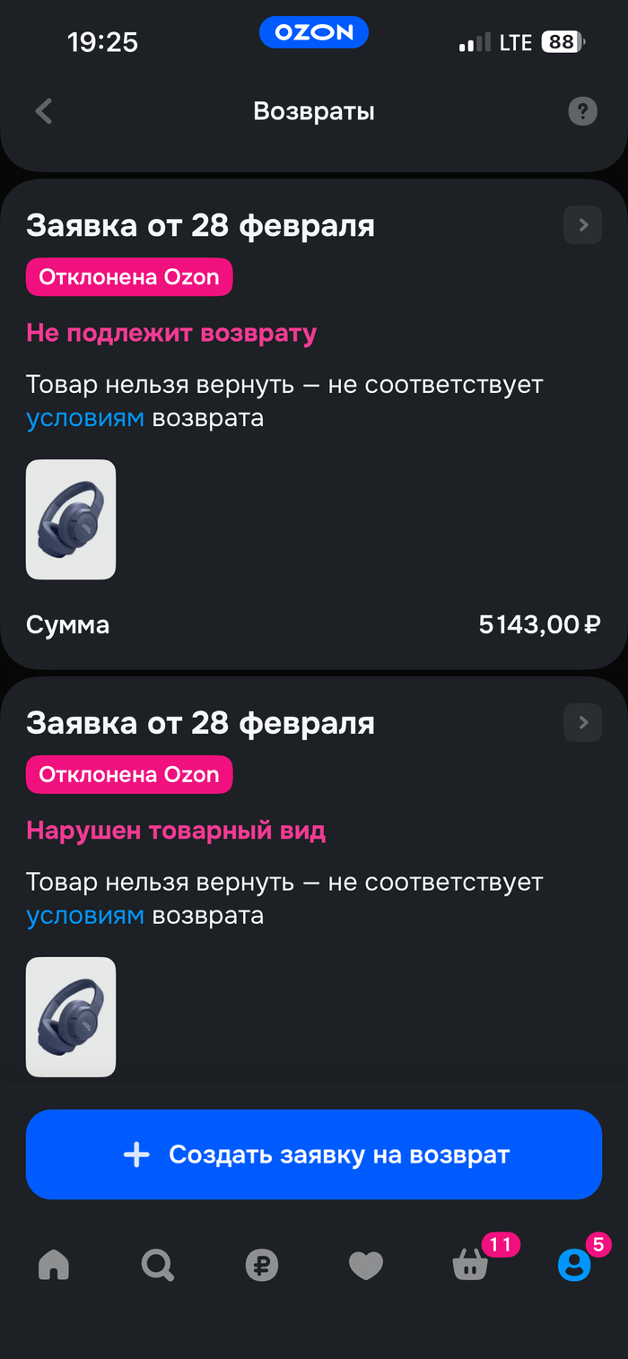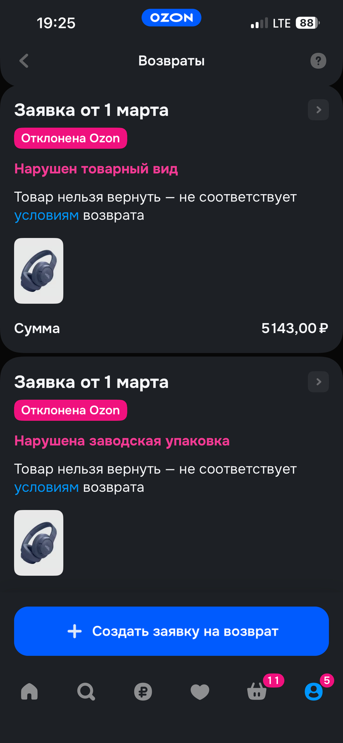 Проблема с возвратом товара на OZON