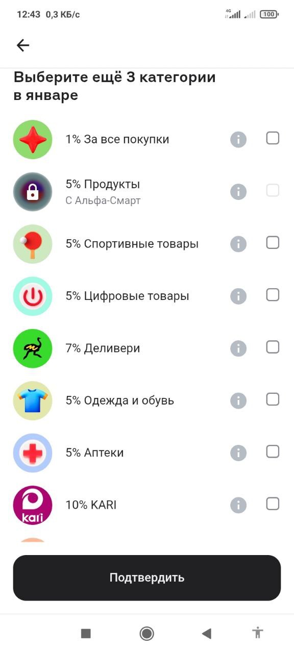 предлагает нищенские 0,5 процента на все покупки и до 5% на различные категории. При этом (без платных подписок) можно выбрать всего три категории. К примеру: